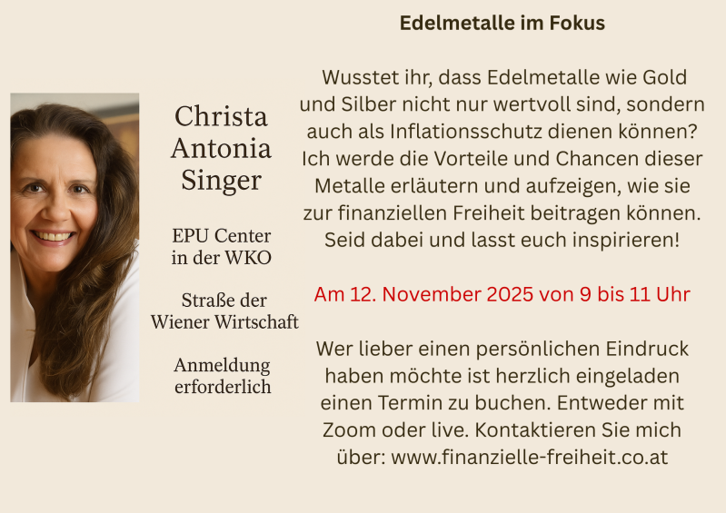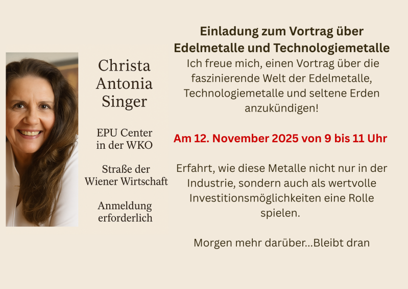 Freuen Sie sich auf einen spannenden Vortrag einer erfahrenen Expertin im Anlagengeschäft. Wer das ist, bleibt eine Überraschung!